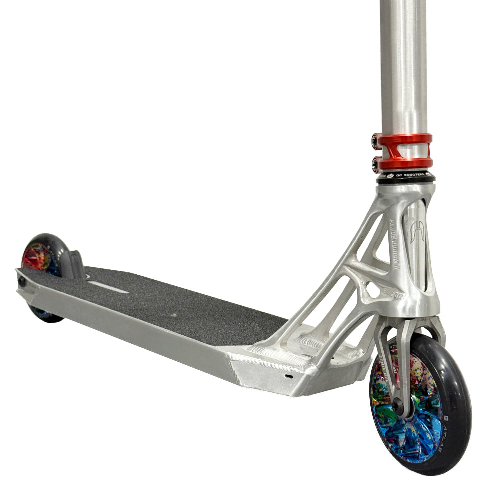 Introducing the featherweight champion of the scooter world! We've crafted a gravity-defying custom ride that'll make you question physics. Featuring the airy Ethic DTC Pandemonium V2 Deck, whisper-light Merrow V3 Fork, barely-there Ethic DTC Atlas Wheels, and the float-like-a-butterfly Ethic DTC Wolpertinger. Every component was selected with one mission: to create a scooter so light, you might need to tie it down on windy days!