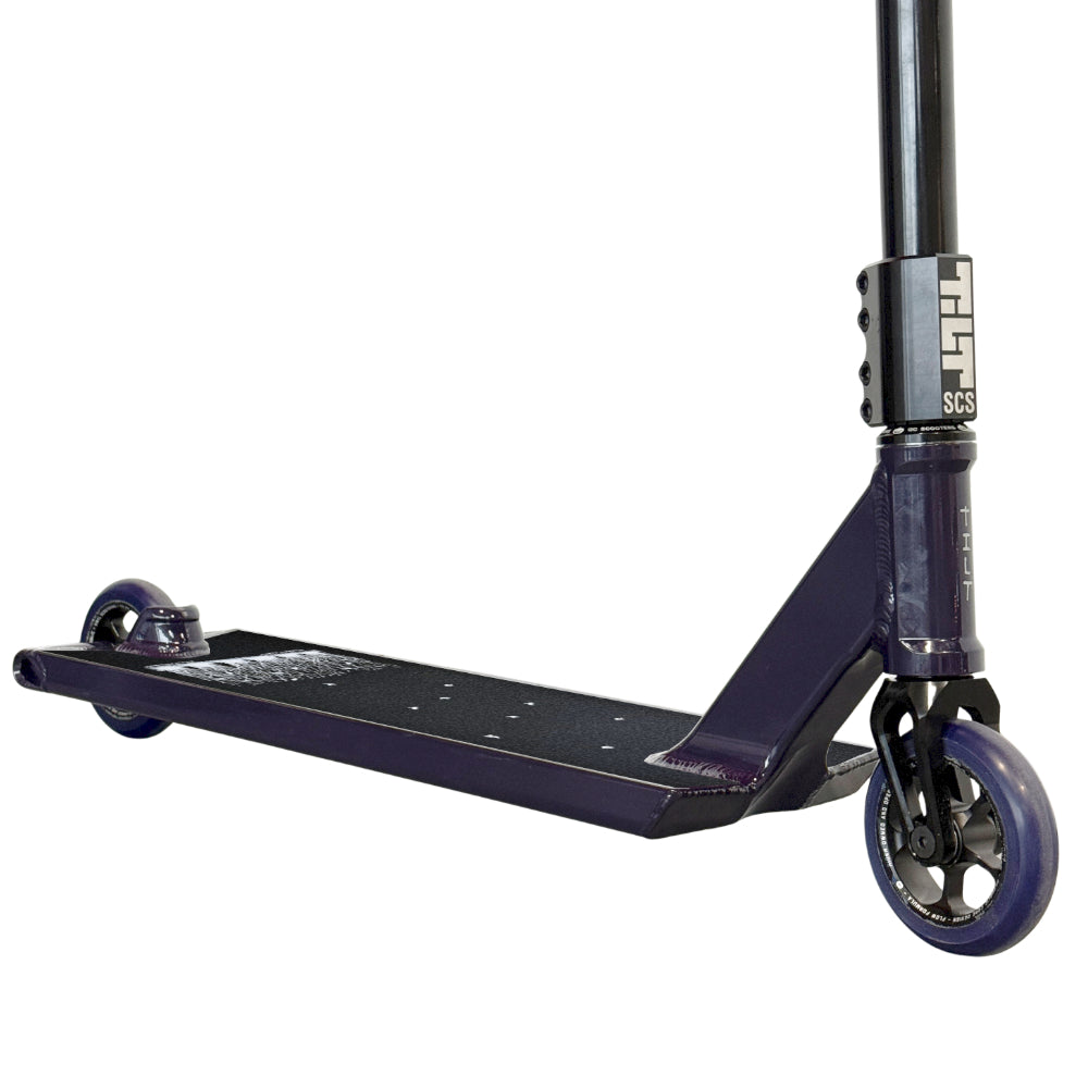 The Midnight Demise is your reliable companion for mastering street riding. Built with a Tilt Demise deck that won't let you down, paired with Ethic DTC Tenacity V2 bars designed to support your progression. Vinyl Republic wheels keep you rolling smoothly through every session, while the Tilt fork and SCS work together to give you the stability you need. The bold purple and black aesthetic shows you mean business. Light enough to carry, strong enough to handle whatever you throw at it, this scooter grows with your skills and keeps up with your ambition.