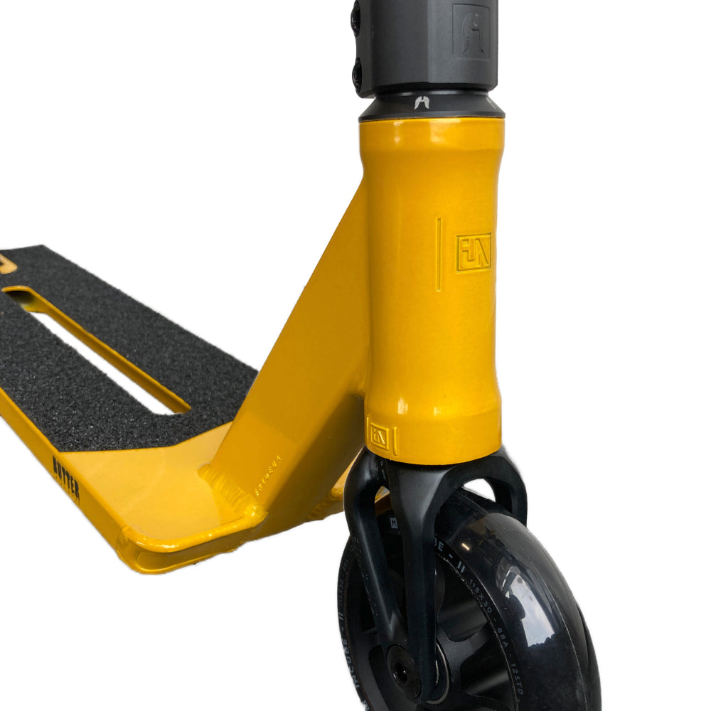 How to take a good complete scooter and make it better? Add butter! The Pandora was lacking a bit in stability and grinds, so we decided to correct that with the smoothest deck to grind with, the Urbanartt Butter. We also added matching grips because why not?!?