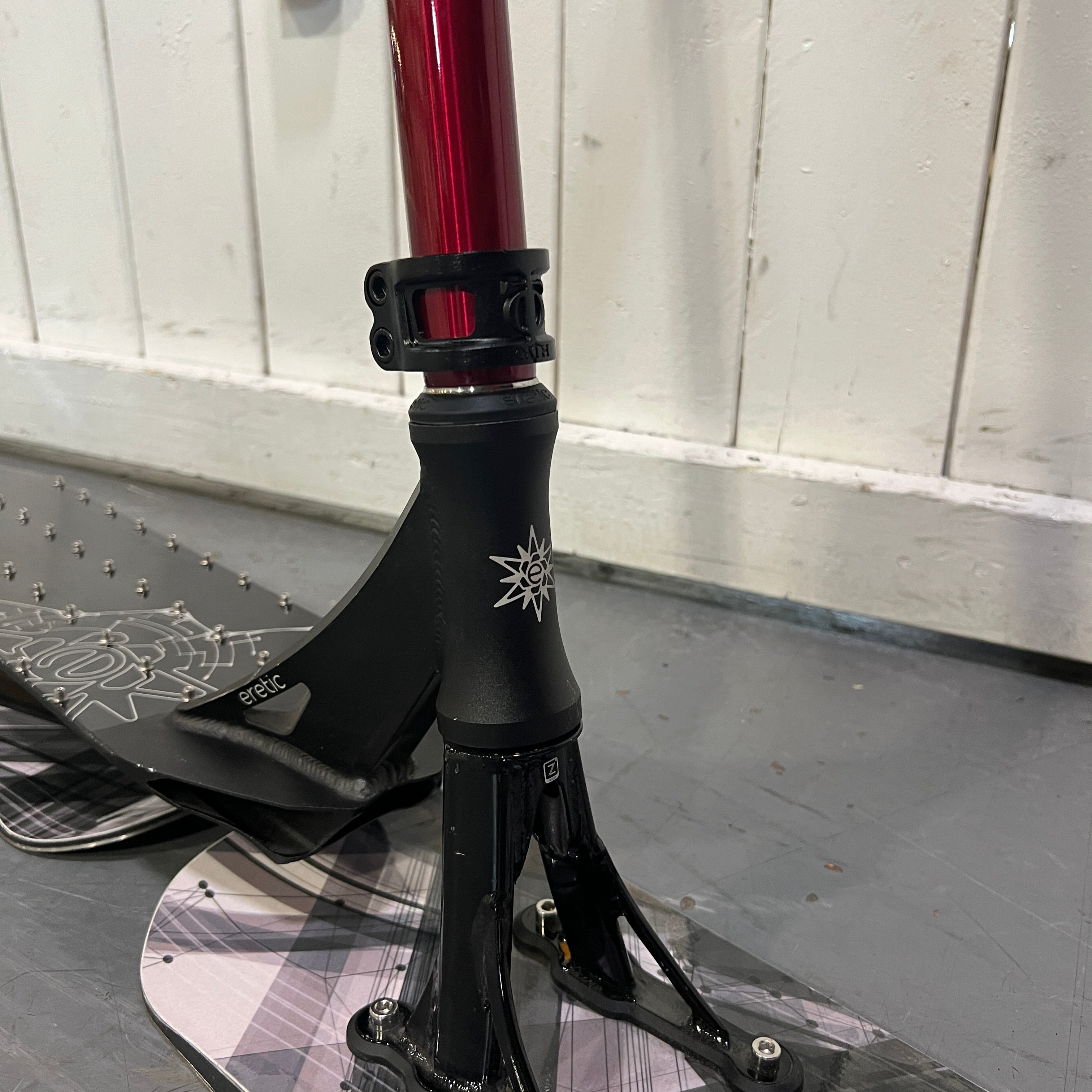 Here is the Eretic Powder version, designed for riding in powder with wider skis than the slope version and a fixed fork that will make it more stable for turns.