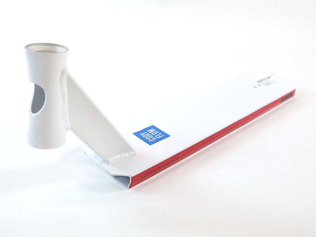 With his 2nd place at Nitro World Games, 2nd place at AUS Pro Series, 6th place in the 2018 ISA World Championship, and his countless wins in North America, he is already making his mark in the scootering world. Cody's favorite verse from the bible is placed on the side of the deck, It's a constant reminder and motivator for Cody to always do his best. The unique graphic and multiple colors will keep heads turning at the park.