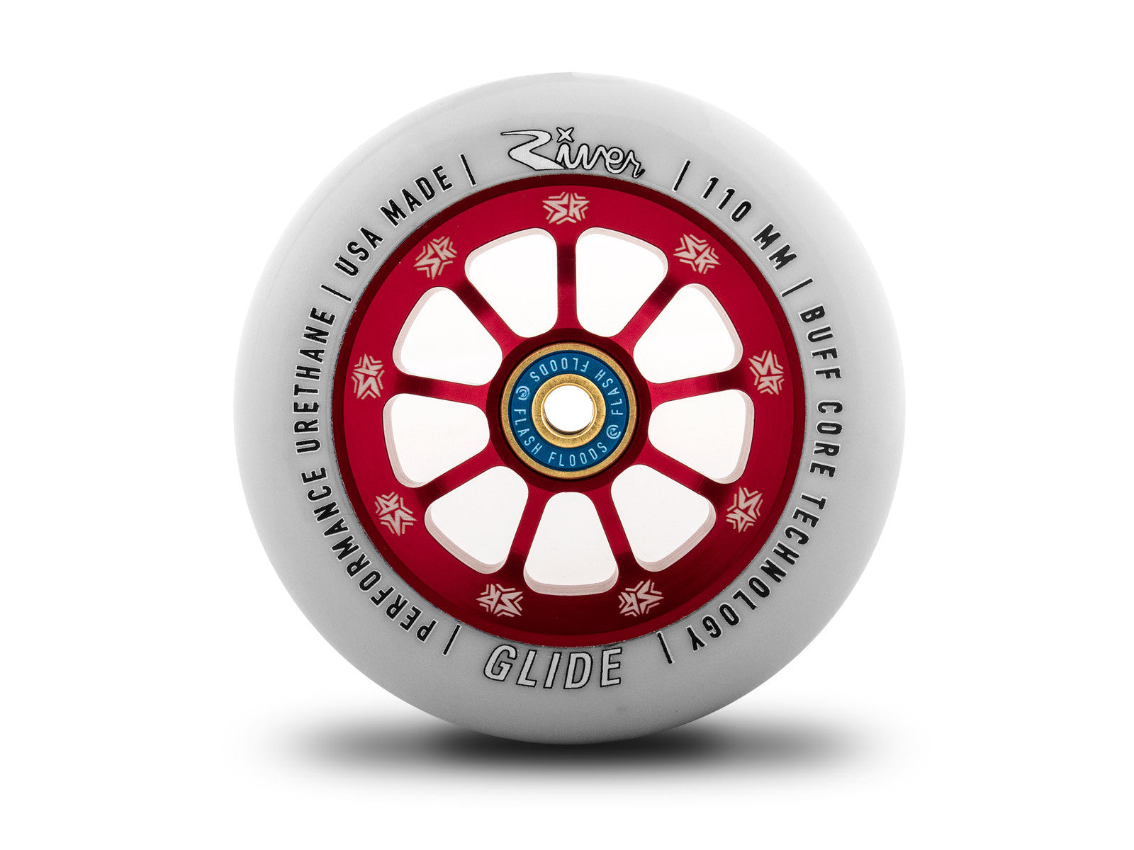 River Glide Wheels - PAIR, 110mm, Scooter Resource Collab (Light Gray on Red)