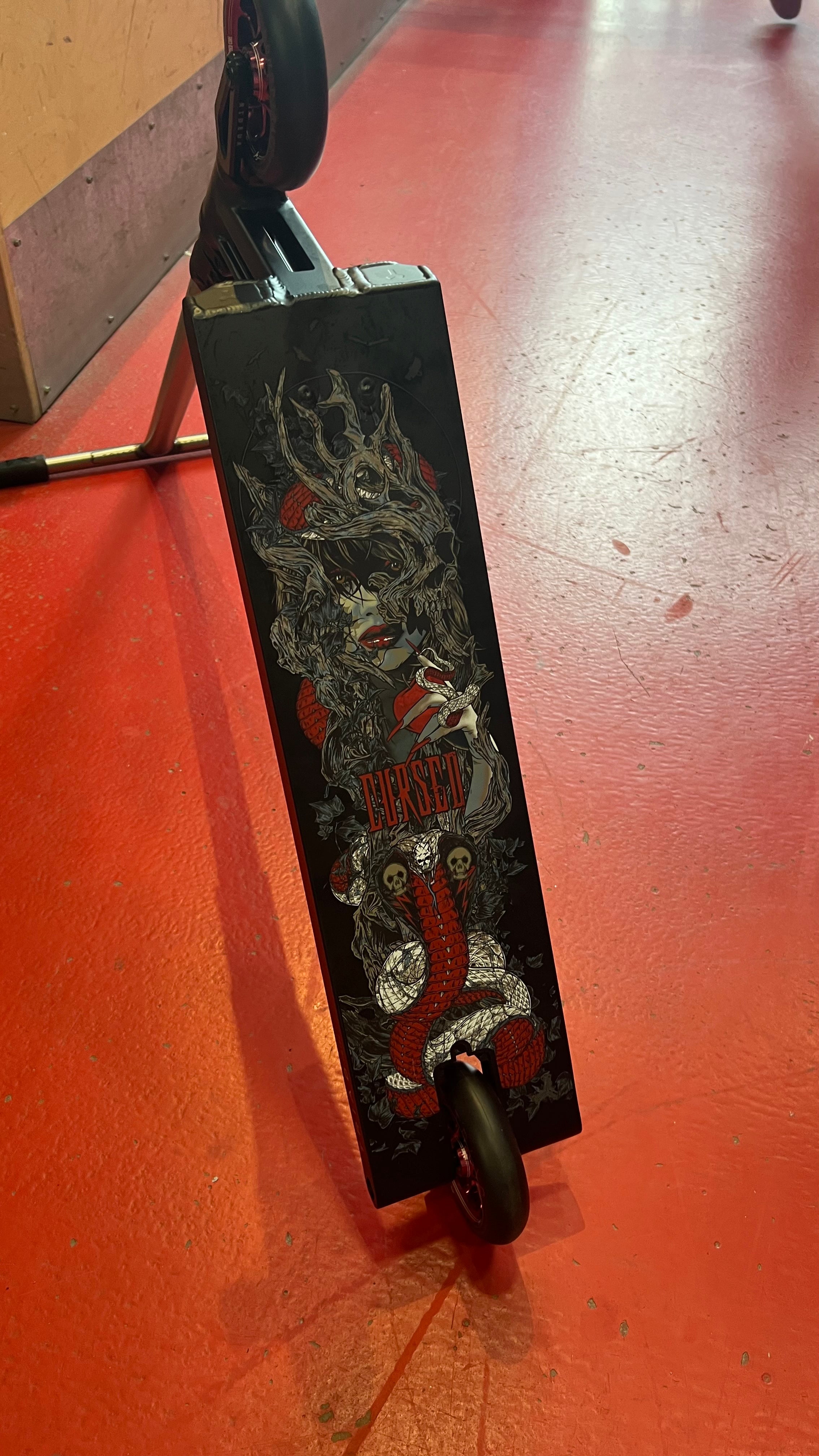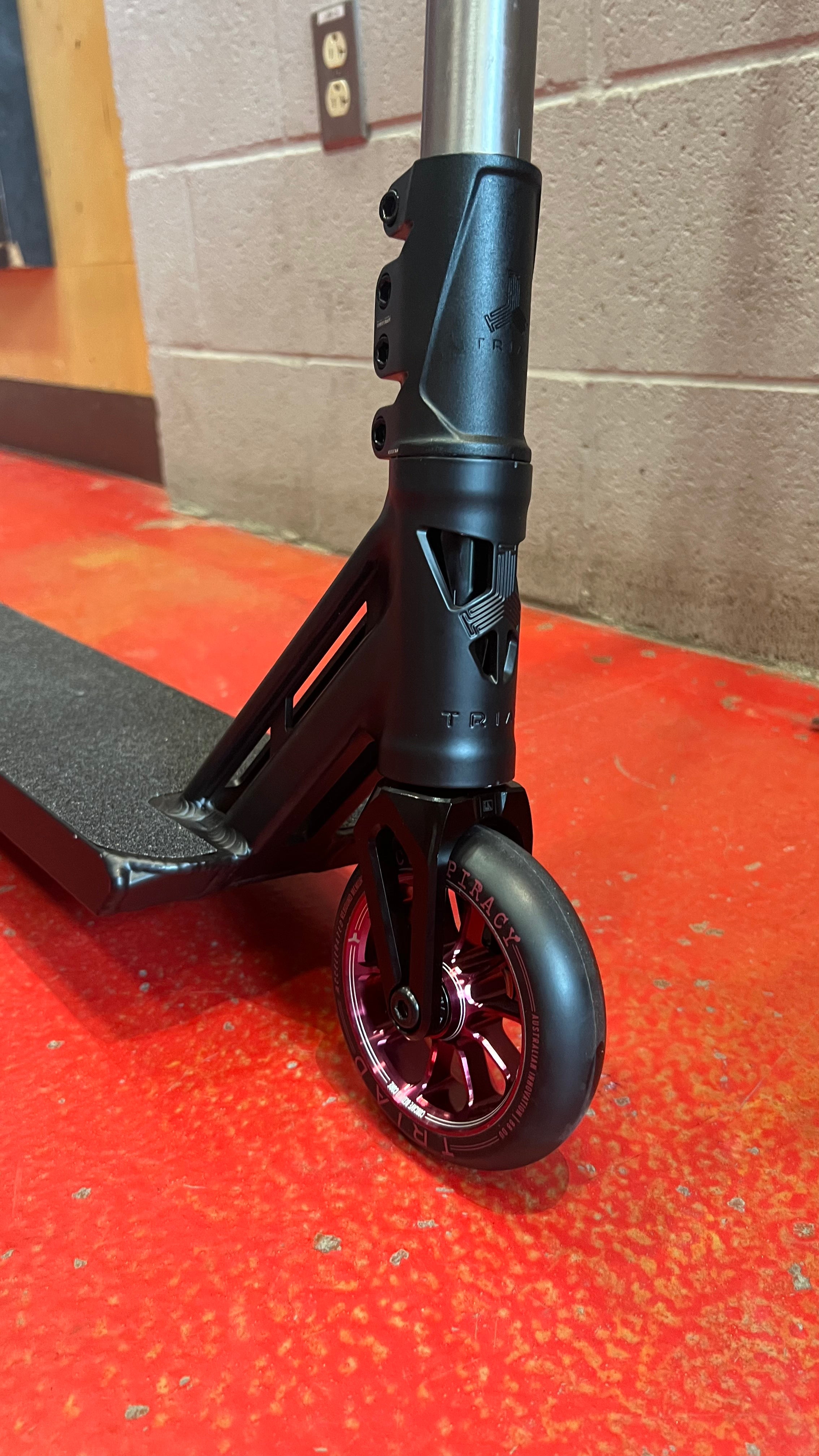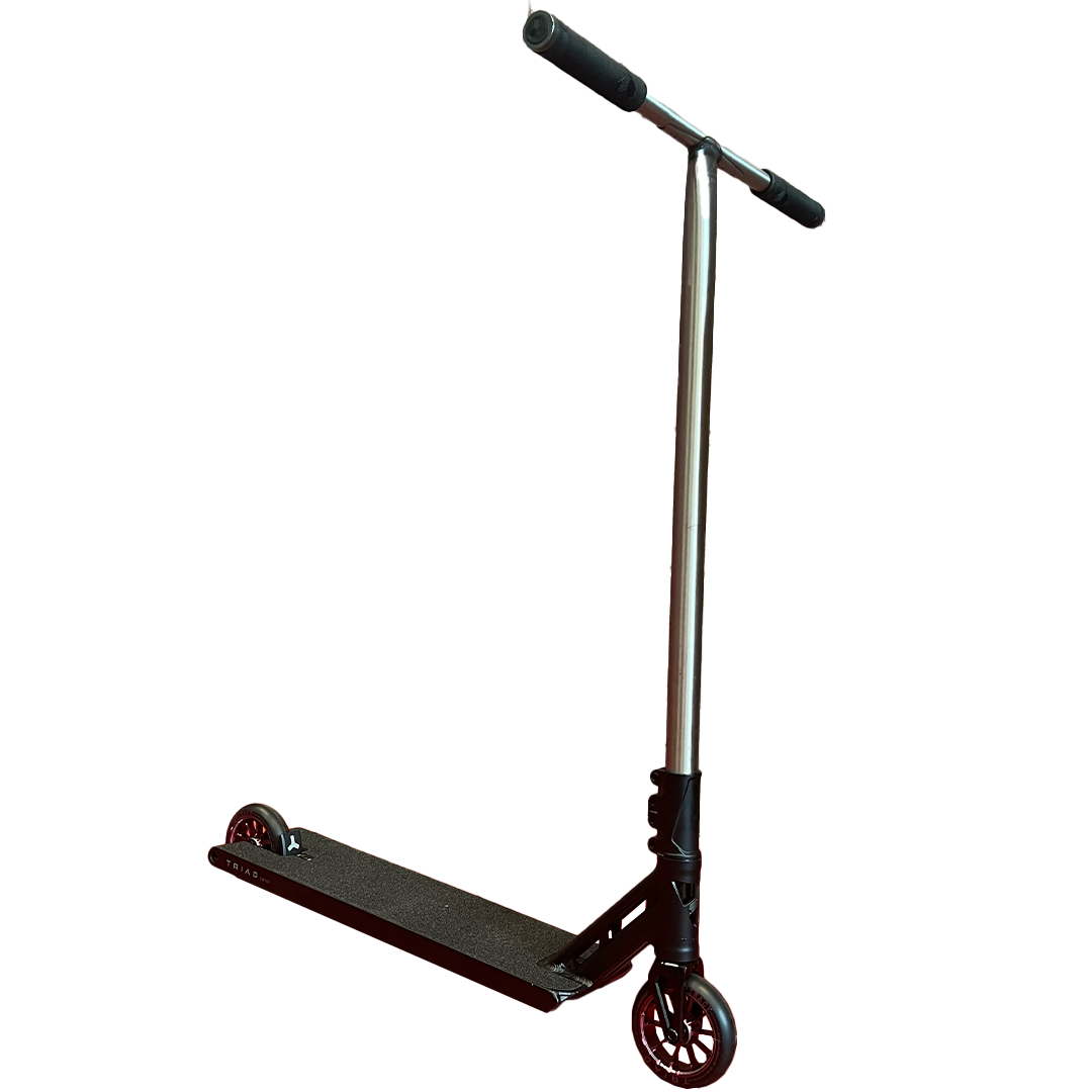 Street Demon, cette trottinette est le summum du street riding, et se distingue par ses couleurs rouge diabolique et noir ténébreux. Il est tout aussi méchant que le visage en-dessous du deck Triad Cursed, qui est léger, solide et large, parfait pour tout ce qui est dans la rue. Attention cependant, si vous vous concentrez trop fort, la trottinette pourrait faire des manuels toute seule...