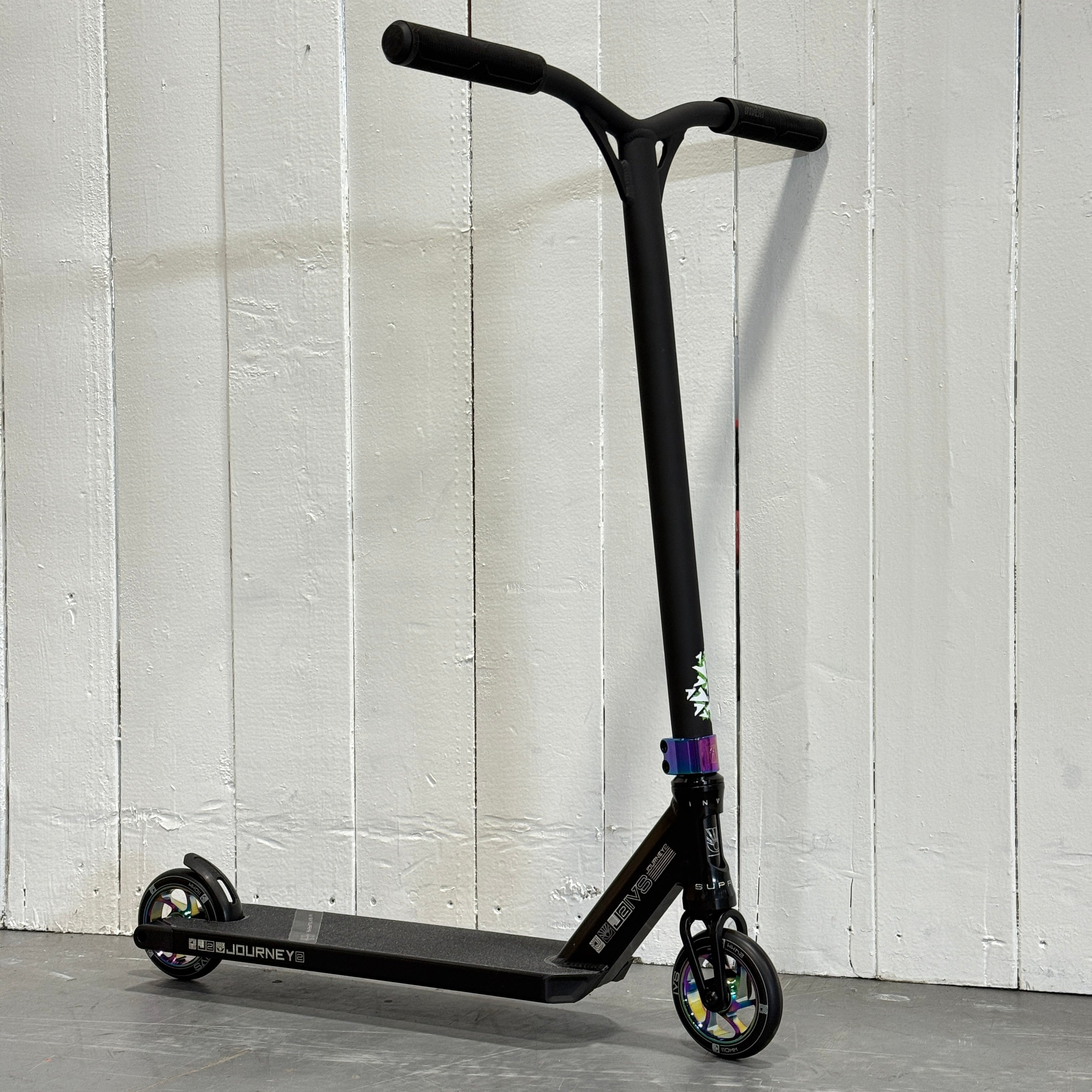 Le Journey amélioré est le même scooter complet que l'Invert Journey 2, mais avec quelques améliorations notables. Il est équipé d'un guidon en aluminium Antics Eclipse et d'un collier Ethic DTC Valkria, ce qui le rend encore plus léger ! Un premier ou un deuxième scooter idéal pour tous les pilotes.