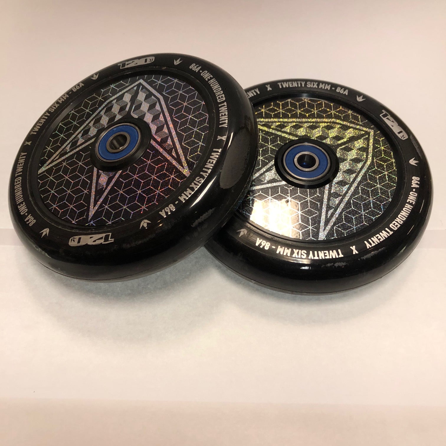 Envy 120mm Hollow Core Geo Logo Hologram (PAIR USED) - Scooter Wheels