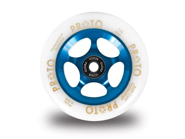 Gripper wheels are some of the fastest wheels on the market. PROTO Wheels are made in the USA and have an anodized core for durability. Featuring BUFF Core Technology to reduce dehubbing. All PROTO Scooter Wheels come with bearing removal slots for taking bearings out with ease. These wheels come with High Quality PROTO Murders Bearings Pre-installed. PROTO - STICKERS INCLUDED. Limited 90-day warranty.
