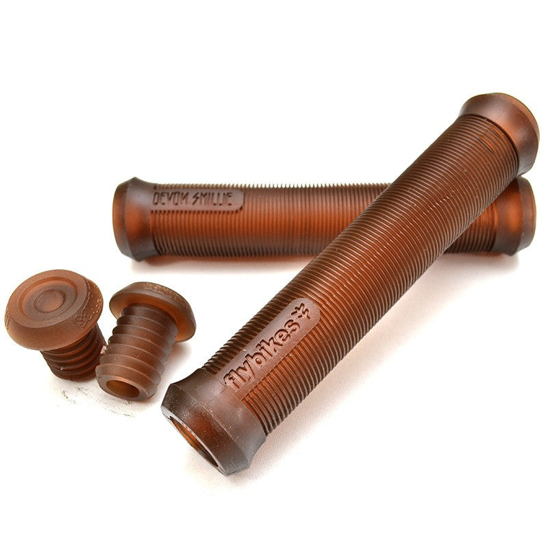 The first thing you feel when you jump on your bike are the grips, so bottom line, they better feel good ! Devon was always fan of the traditional mushroom design so that’s exactly what we went with on his signature model, and just kept things real simple overall, its a nice thin soft compound flangeless reversible mushroom grip in a bunch of cool colors. Job done !