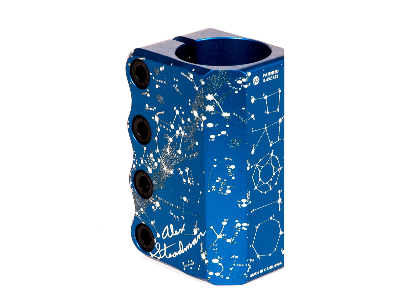 Laser Engraved Alex Steadman Cosmos Graphic Made of High Grade 6061-T6 Aluminum Includes Compression Washer and 5 Bolts For Use With Standard Sized Bars 100% Made in California GITN-UPC-EAN Number: 081351102126-2 The Alex Steadman Signature Baby SCS was created to match the Cosmos V2 Steadman Signature Wheel and Constellation Map Tee. The PROTO Baby SCS is and has been one of the most durable compression systems on the market since PROTO’s inception in 2008. PROTO prides itself in being on the innovative forefront of freestyle scooter product development and design. The PROTO Baby-SCS (Standard Compression System) is one of the most solid SCS Clamps around. In fact, it is the first and original 3 Inch SCS in the Industry and continues to be the leader of the pack. The Baby SCS represents the timeless original innovations of the riders who started the forward progress of the Scooter Industry. The creation and development of this product set the standard for all to follow. The Baby-SCS will ONLY work with standard size bars. 100% Made in San Diego, California by riders for riders. PROTO - Stickers included! Ride the original…ride PROTO.