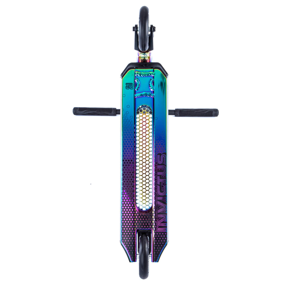 L'objectif principal que Root Industries s'est fixé avec la gamme de trottinettes complètes freestyle d'Invictus 2, était de donner au rider une trottinette qui lui permette de progresser plus rapidement. L'Invictus 2 atteint cet objectif grâce à un plateau encore plus parfaitement équilibré que la première itération du produit, qui est conçu pour maximiser l'espace pour les pieds et offrir un confort optimal, tout en restant compact et en permettant des manœuvres rapides et fluides.