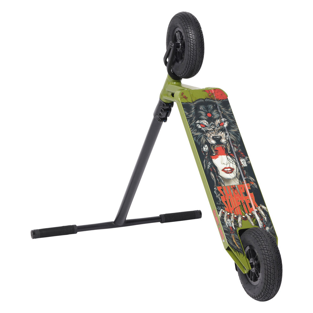 Ce projet a duré près de 2 ans et nous sommes fiers d'avoir conçu le Shape Shifter pour être un scooter hybride qui fonctionnera au plus haut niveau sur les sauts de terre tout en étant une explosion totale dans les rues ou à votre local. skatepark.