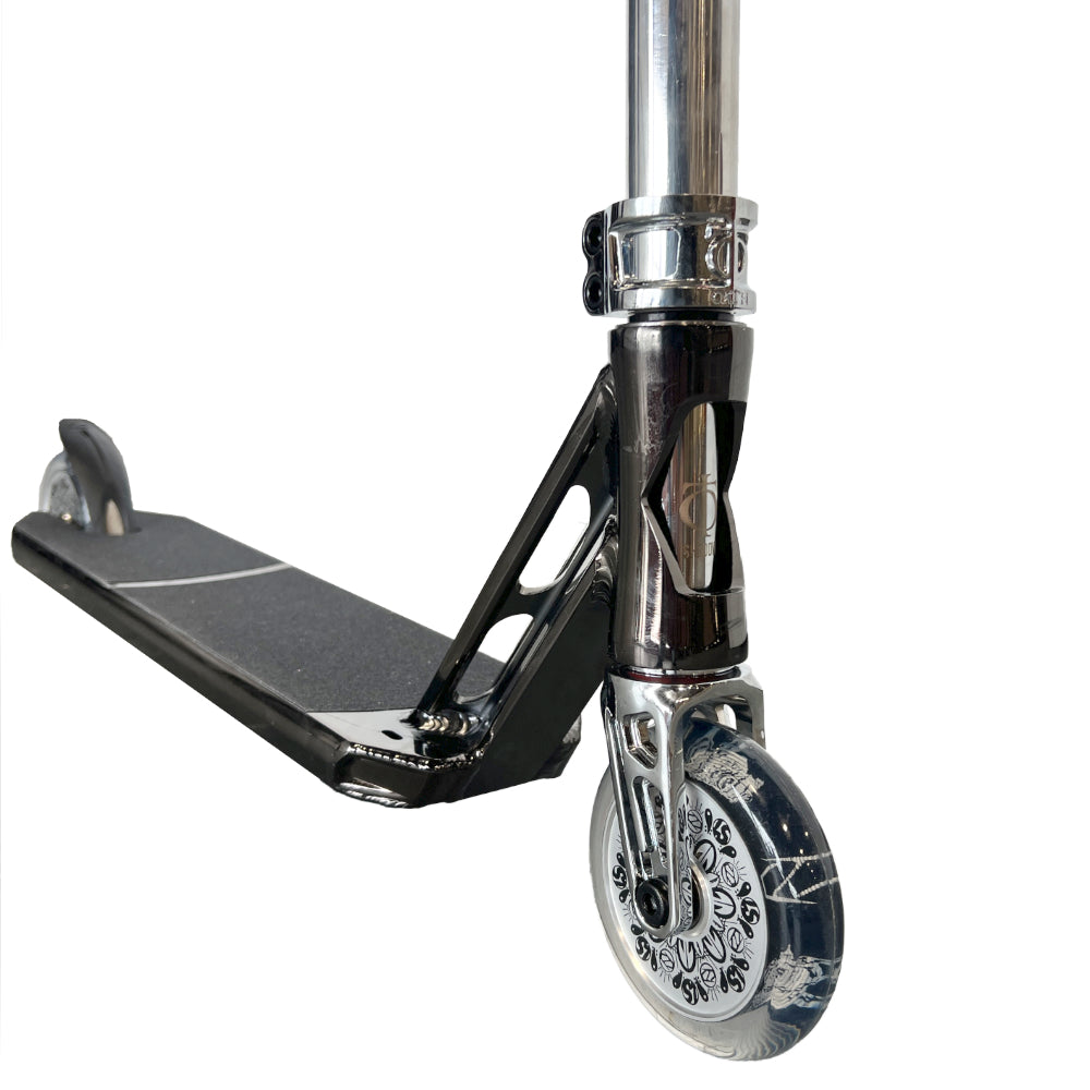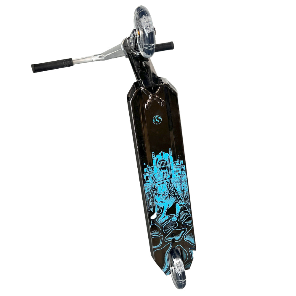 Ride on the edge with the Fuzion Leo Spencer Custom Scooter! This crazy custom scooter boasts a unique graphic, perfect for making a statement at the park. Its lightweight design makes for smooth and effortless tricks. Take your ride to the next level and stand out from the crowd!