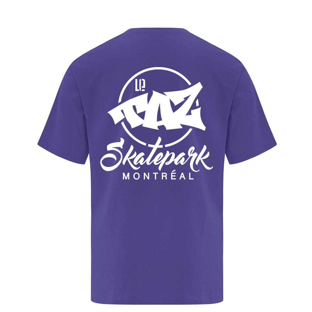 Small TAZ logo in the front. Big TAZ logo in the back.