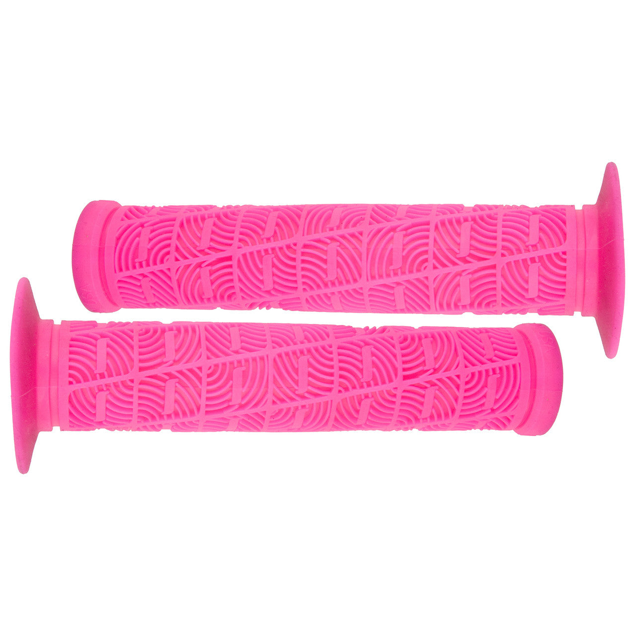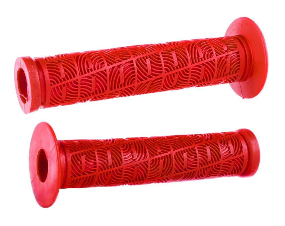 The ODI O Grips are made in the USA from a proprietary rubber compound that increases comfort and wear resistance. The grip pattern features the ODI "O" logo with multi-directional ribs for maximum traction and control. Includes ODI plug style bar ends.