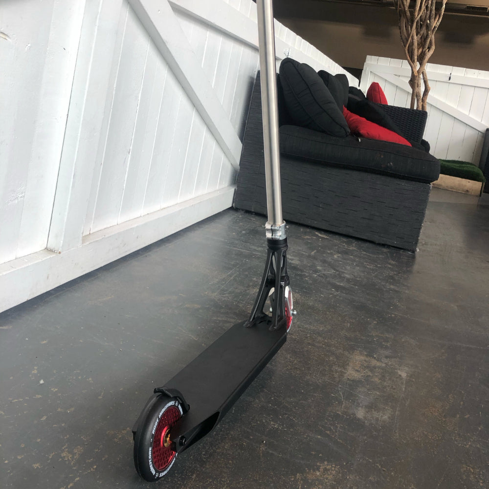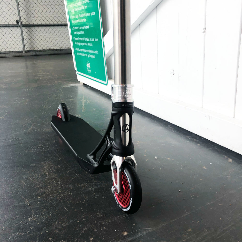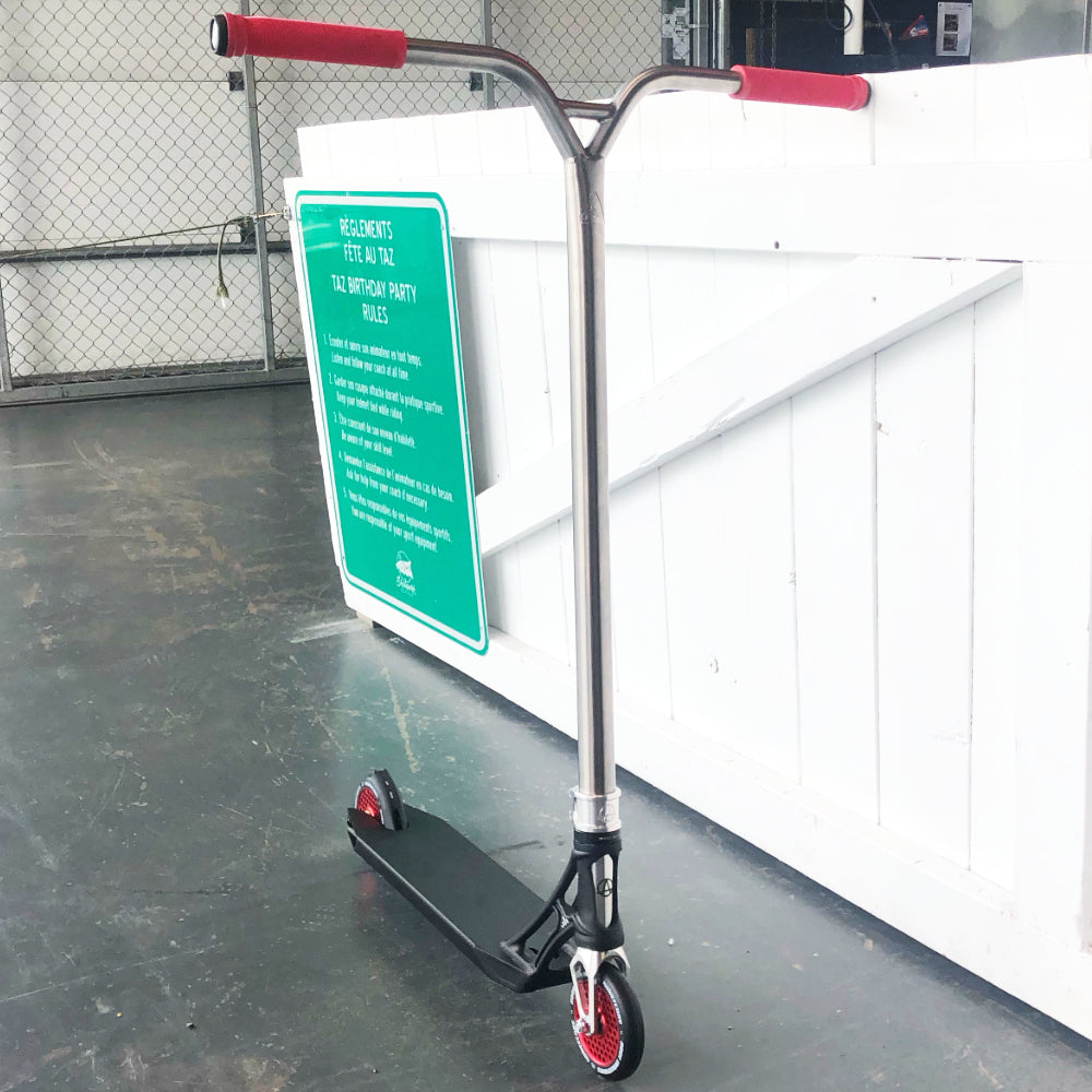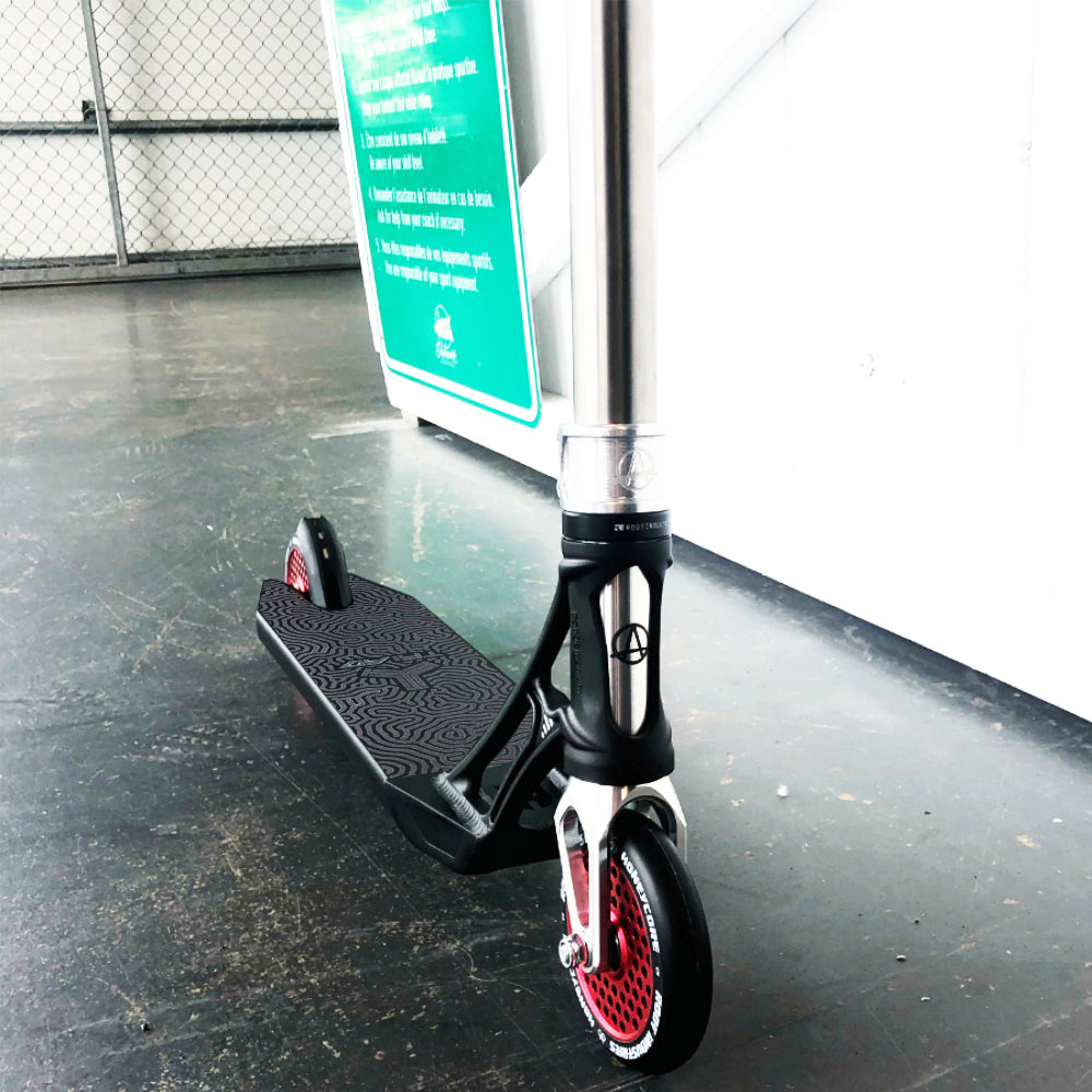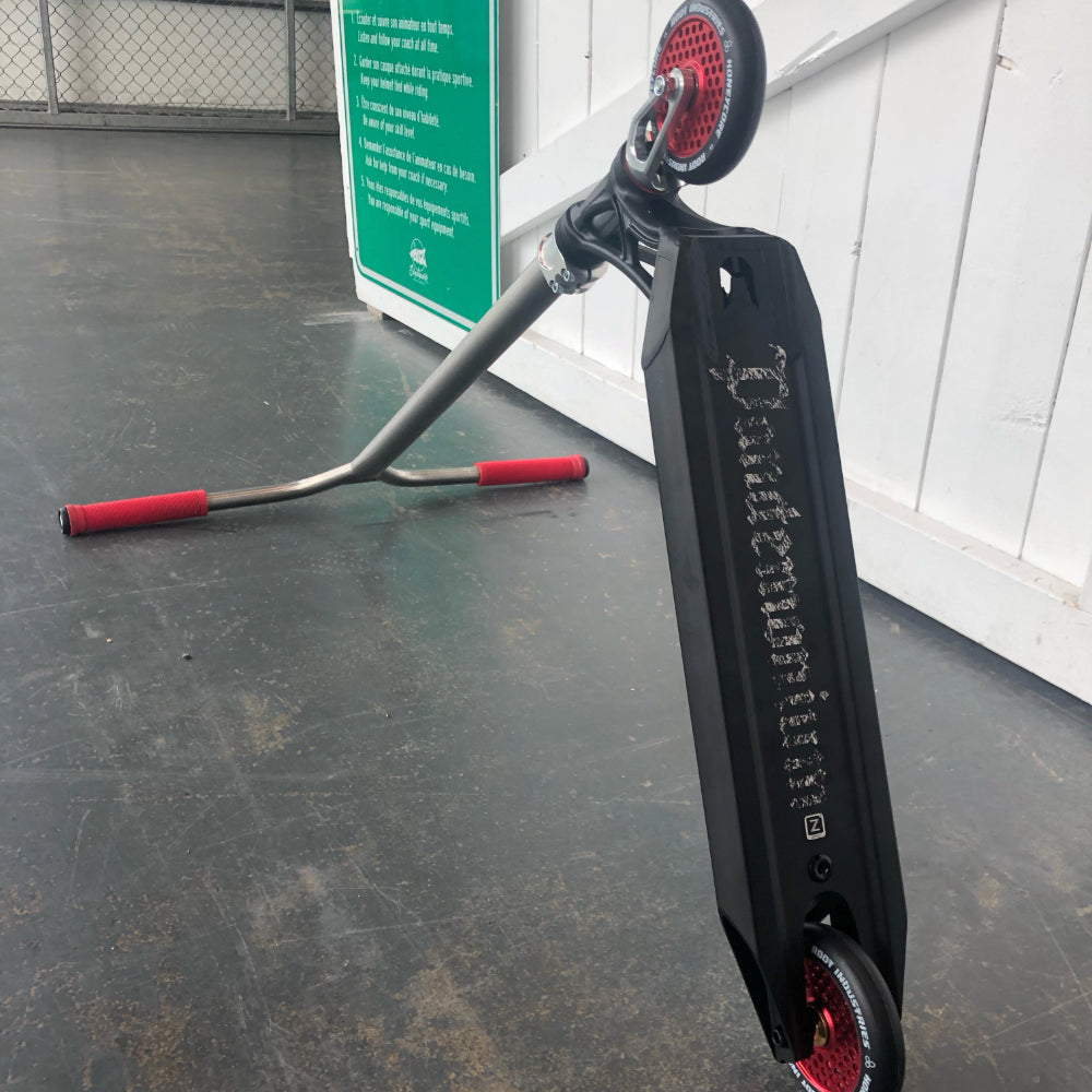 Park Demon, this scooter is the pinnacle of park riding, and stands out with it's devilish red and tenebrous black colours. If you think hard enough, it even does kicklesses on it's own, as if it was possessed...