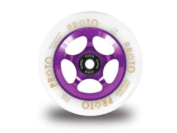 Gripper wheels are some of the fastest wheels on the market. PROTO Wheels are made in the USA and have an anodized core for durability. Featuring BUFF Core Technology to reduce dehubbing. All PROTO Scooter Wheels come with bearing removal slots for taking bearings out with ease. These wheels come with High Quality PROTO Murders Bearings Pre-installed. PROTO - STICKERS INCLUDED. Limited 90-day warranty.