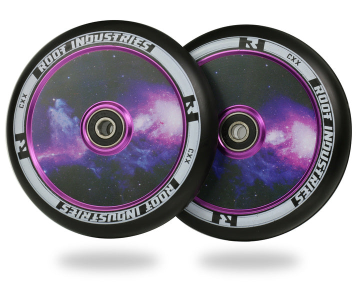 The all new AIR Wheels from Root Industries are one of the lightest wheels on the market and by far the lightest 120mm wheel currently available! Weighing an ultra light 200grams (230grams with bearings) the hollowcore technology means you get the strength of twin plate arches with the lightness of air in the inner chamber. Matched with the classic high quality Root Industries PU formula that is known for it's speed and strength so you know you are getting a premium wheel! Professionally pre-fitted with the super fast Root Industries Abec 11 Bearings the new AIR wheels give you high quality and value for money! Did you know? The Root Air wheels were ridden by more of the world's top 25 riders at the 2015 Pro Scooter Series than any other wheel Since these wheels launched in August 2015, they have been our best-selling wheel, outselling every other wheel on the market The Root Air wheels are made from a unique urethane compound that took Root Industries more than 2 years to perfect.