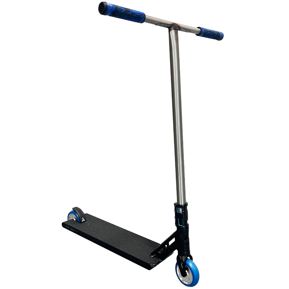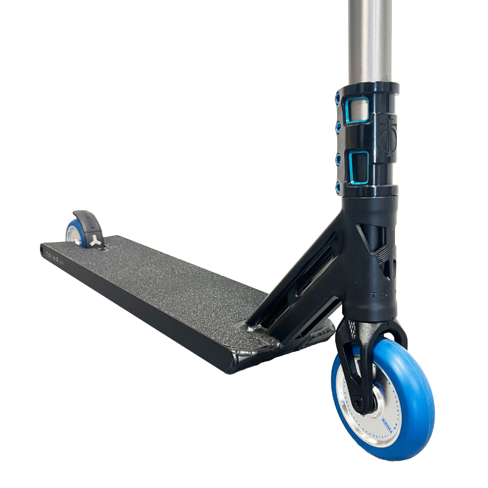 The Triad Black & Bluee Street is the ultimate custom scooter for any street rider. Its 6” wide deck provides optimal performance for any tricks or stunts, while the sleek color combo adds a touch of style to your ride. Get ready to turn heads and dominate the streets with the Triad Black & Blue Street!