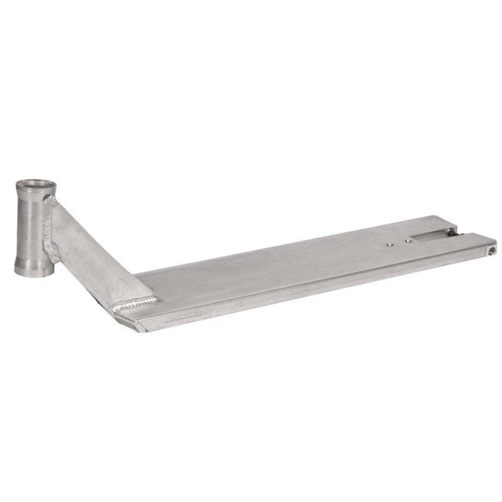 The Satellite is the culmination of all our knowledge about making scooters. We've taken all our best ideas, combined with some new ones, to create our most desirable deck to date. Wider, lighter, and thinner than the boxcutter, the Satellite weighs in at half a pound less with a 5.75 inch wide profile. With the 83.5 degree headtube angle, it is more responsive and roomier up front. We've changed our approach to deck ends, adding a sleek radiused bottom corner to the grind surface. For the first time, we have widened the middle channel to accommodate modern larger sized wheels. Also new is the process of using internal fluting to reduce weight & add strength where possible. This deck has everything you need, and nothing you don't.