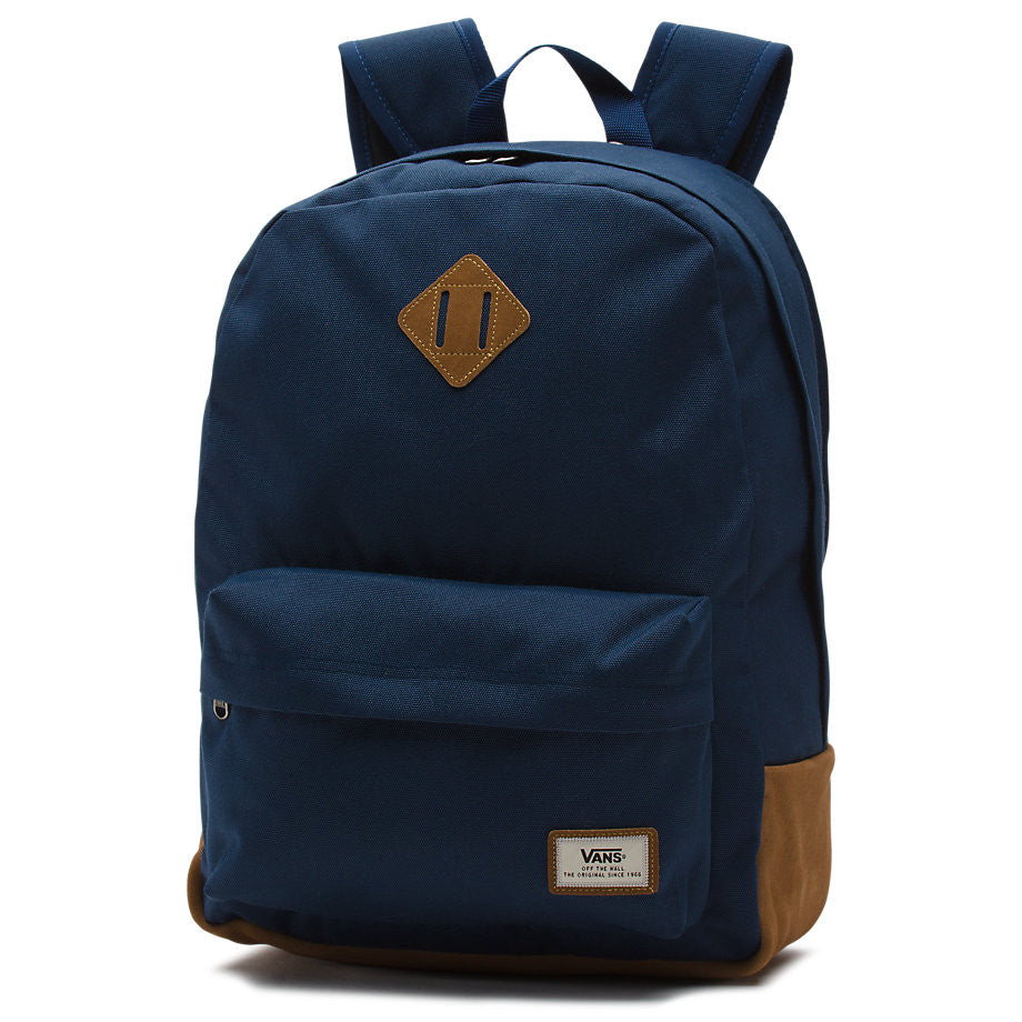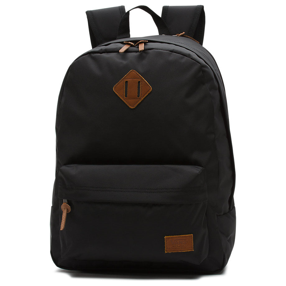 The Old Skool Plus Backpack is a 100% polyester backpack with a large main compartment, an external zip-entry laptop compartment, ergonomically-designed shoulder straps for comfort, and a front zip pocket with an organizer for quick access. Measuring 17.5 L x 13 W x 6.75 D inches, it has a 23-liter capacity.