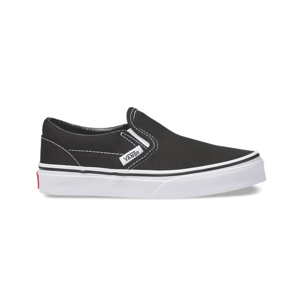 The Canvas Classic Slip-on has a low profile, slip-on canvas upper with elastic side accents, Vans flag label and Vans original Waffle Outsole.